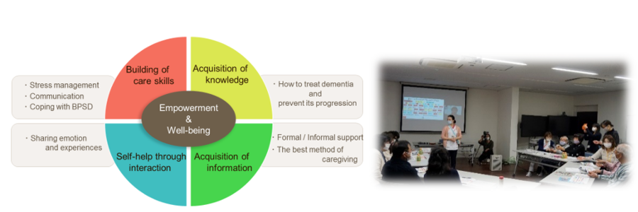 Patients and their families learn about how to perceive and respond to dementia symptoms through role plays. Families share their problems and concerns, and try to come up with solutions together.