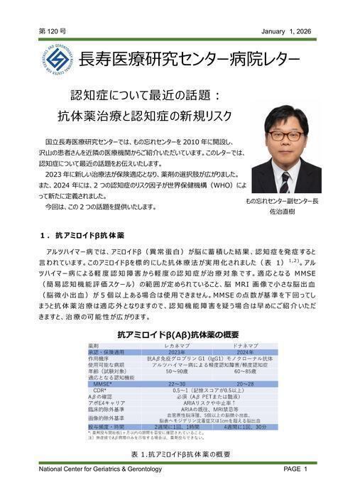 ホーム > 病院 > 新着情報一覧 > 病院レター第120号「認知症について最近の話題:抗体薬治療と認知症の新規リスク」