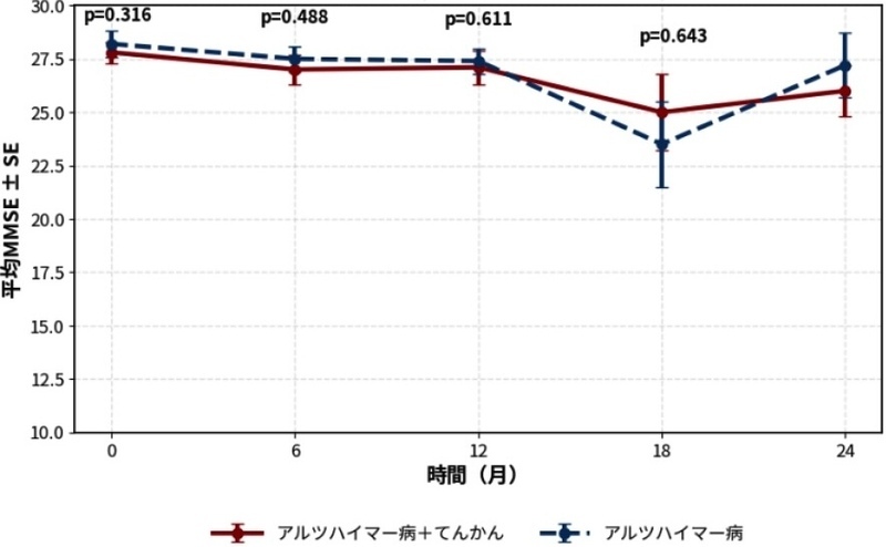 本研究では、「てんかんを合併したアルツハイマー病患者」と「てんかんを合併していないアルツハイマー病患者」を比較し、認知機能の低下の進み方に違いがあるかを、実際の診療データを用いて検討しました。