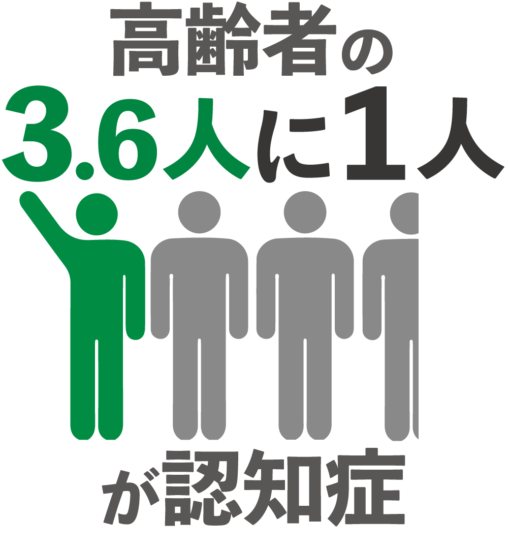 認知症やMCIと診断される方は1,000万人を超えると推計されており、高齢者の約3.6人に1人が認知症又はMCIとなります。MCI・認知症を自分事として捉えて、早期発見のための検査を受けるようにしましょう。