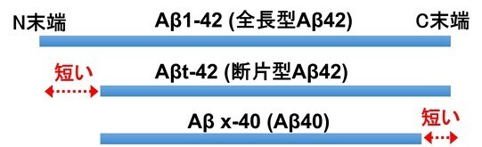 図4.全長型Aβ42(Aβ1-42)や断片型Aβ42(Aβt-42)およびAβ40の模式図