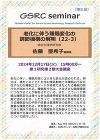 ホーム > 研究所 > イベント・セミナー > ジェロサイエンス研究センター > 第31回GSRCセミナー ⽼化に伴う睡眠変化の調節機構の解明