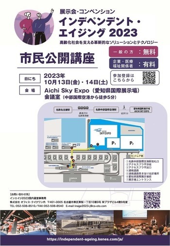 10月13日(金曜日)からAichi Sky Expo(愛知県国際展示場)で開催されるインデペンデント・エイジング2023の会期中に、当センター主催による市民公開講座を開催いたします。ふるってご参加ください。
